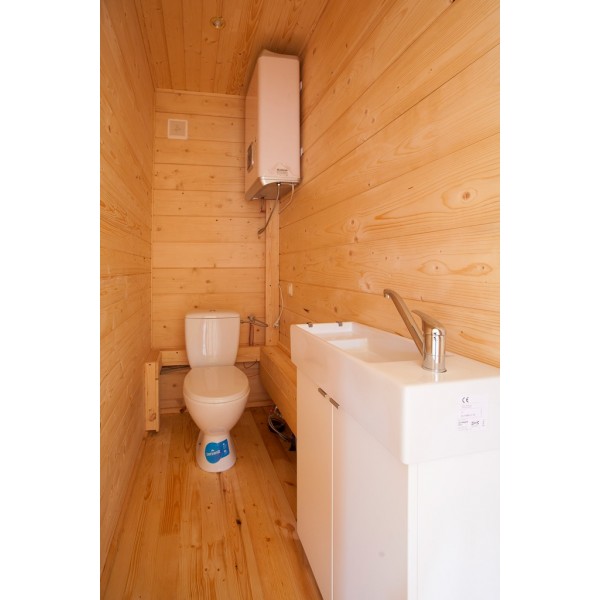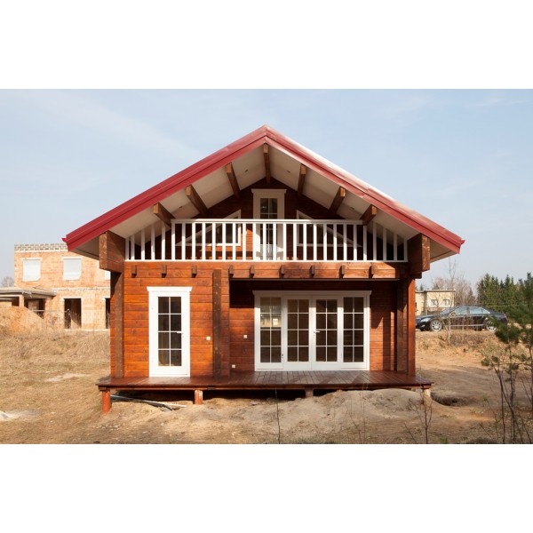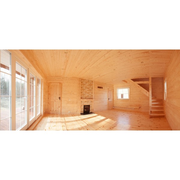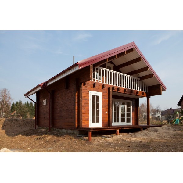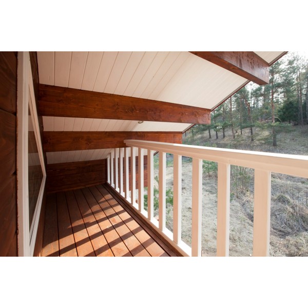 Namelis (visa medinė dalis - klijuoto tąšo 160 mm storio sienojai ir stogo balkiai, langai ir durys)